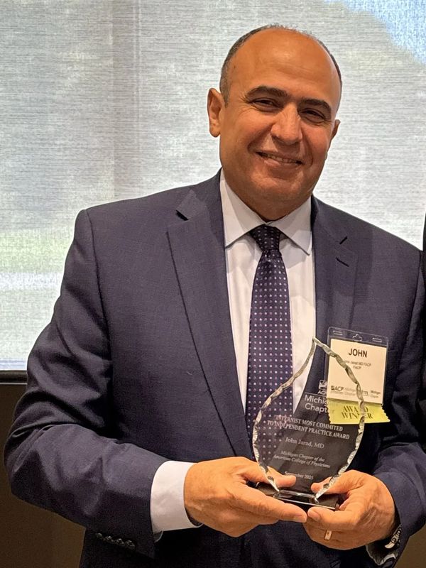 The Michigan Chapter of the American College of Physicians has awarded Dr. John I Jarad, MD, FACP with Internist Most Committed to Independent Practice Award.